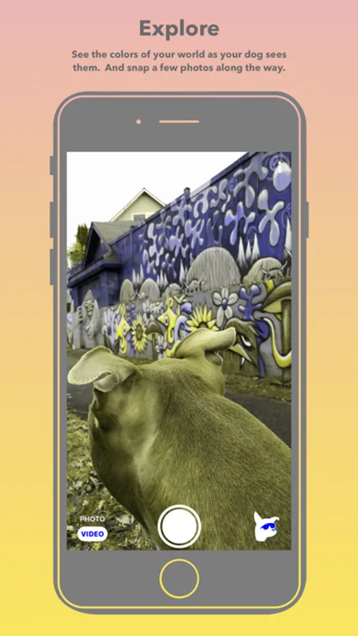 Toggle back and forth between dog sight and human sight even while shooting videos. Flip to the front camera and snap a selfie with your dog in their color spectrum.