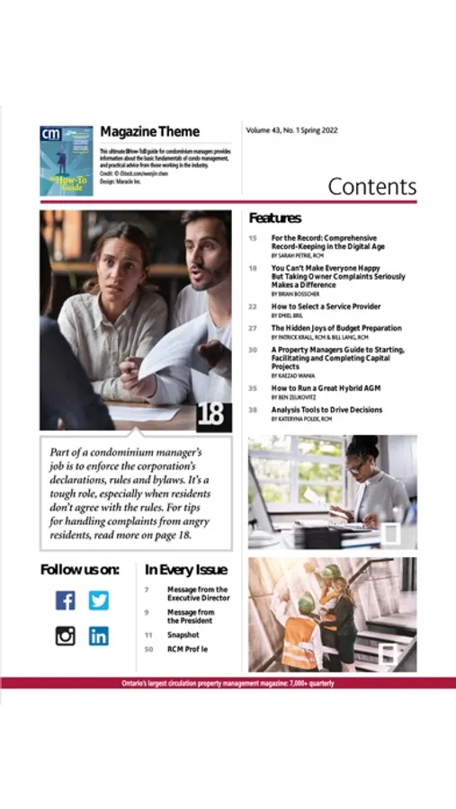 Condominium Manager Magazine is the flagship publication of the Association of Condominium Managers of Ontario (ACMO) and has been the leading publication for the condominium management industry in Ontario for more than 40 years.