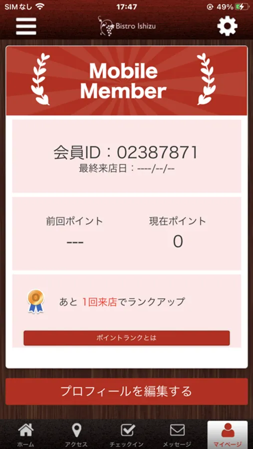 BistroIshizuのご利用状況が確認できます。