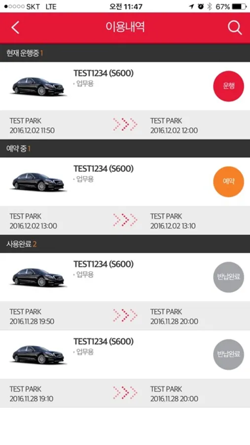 - 예약변경, 차량 사진 전송 등 부가 기능