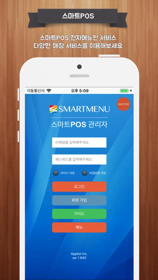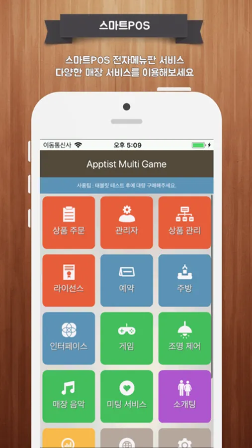 스마트관리자 앱은 매장에서 메뉴를 등록하고 주문 확인할 수 있습니다.