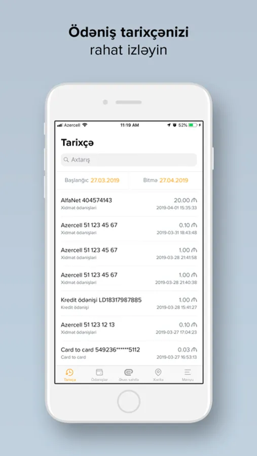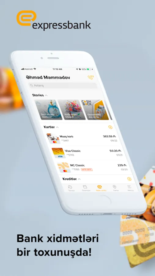 Express24 mobil əlavəsinin hazırki versiyasını yükləyərək Siz bir toxunuşla aşağıda qeyd edilən bank xidmətlərindən faydalana biləcəksiniz:
