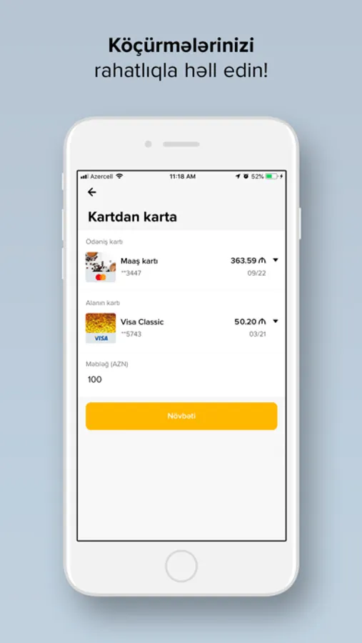 - Bankdaxili hesab və kartlar arasında köçürmə