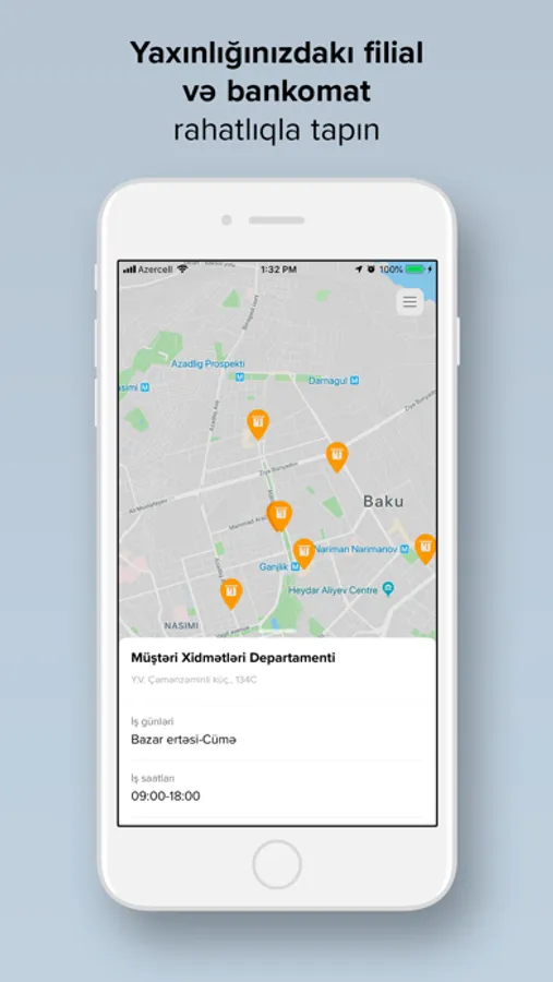 - Bankın xidmət şəbəkəsi üzrə məlumat: filiallar, ATM-lər, Expresspay terminallar