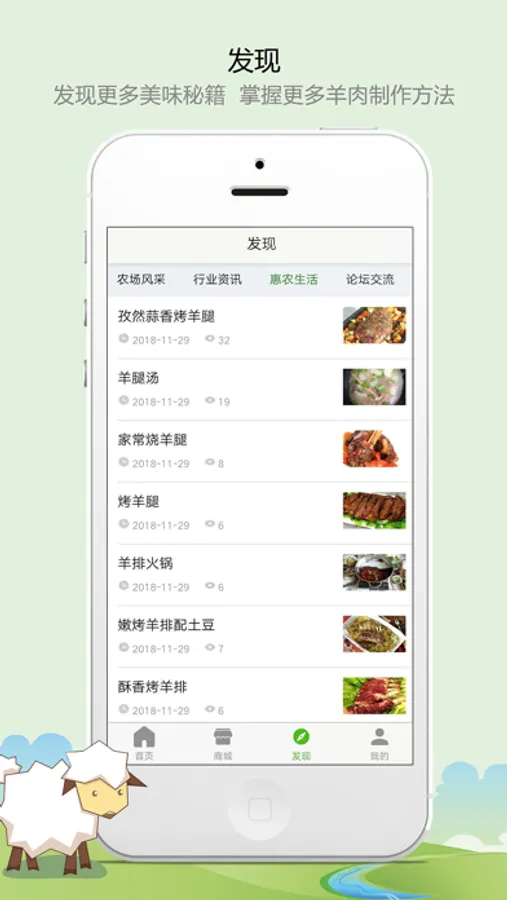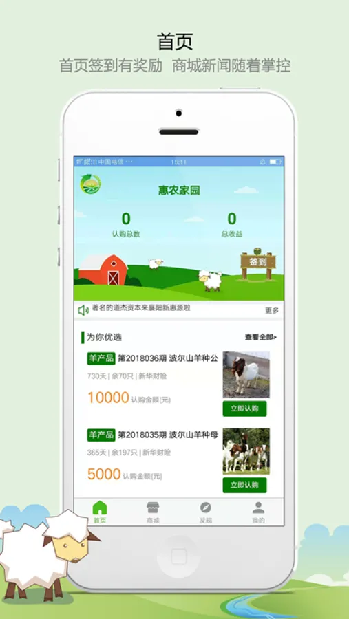 “惠农家园”坚持为农副产品服务,具有农产品认购、生鲜订单、养殖信息浏览、购买等在线功能,是用户购买高端绿色农产品的综合交易平台。让用户充分了解惠农家园养殖的标准化和规模化养殖过程,打造国内首家万头级波尔山羊养殖基地。