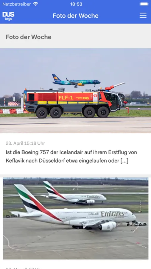 DUS to go ist die zentrale Kommunikations-App des Düsseldorfer Airports, dem drittgrößten Flughafen Deutschlands. Die App bietet tagesaktuelle Informationen aus dem Unternehmen und den einzelnen Bereichen per Push direkt aufs Smartphone. Ergänzt wird das Angebot durch aktuelle Stellenausschreibungen. Nach Registrierung stehen Mitarbeitern des Unternehmens weiterführende, exklusive Informationen zur Verfügung.