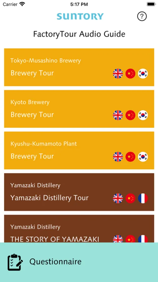 FactoryTour Audio Guide is Suntory Holdings Limited’s official application for plant tours.