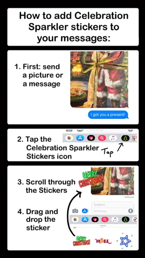 Decorate your messages with Christmas stickers, Happy New Years greetings, Happy Birthday, and Easter stickers!