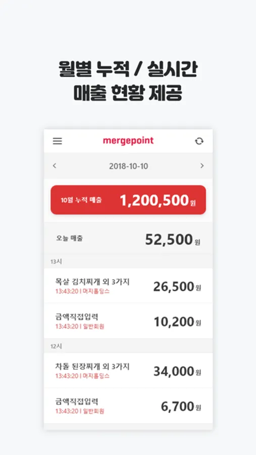 - 실시간 매출 상세 내역 제공