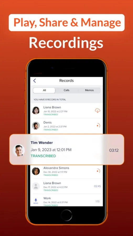 Record phone calls in one tap and use them later with iCall. Our phone call recording app will be extremely useful for business people, teachers and anyone who wants to save important information.