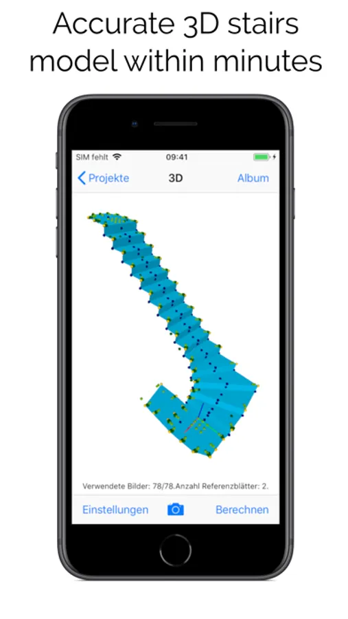 The Linearis3D StairsMeasure App enables you to make precise 3D measurements of staircases with your iOS device's camera. The app automatically computes 3D point coordinates from 2D images of a staircase using two targets per step.