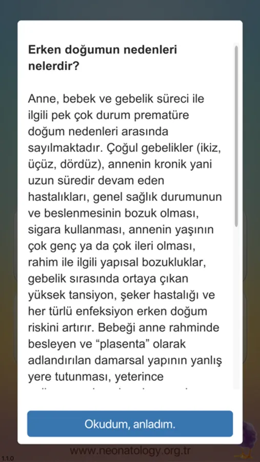 TND Mobil, yenidoğan bebeklere sağlık hizmeti sunan doktorlarının ve hemşirelerinin mümkün olan en iyi tıbbi bakımı sağlamaları için geliştirilmiş bir akıllı telefon uygulamasıdır. Bu uygulama sağlık profesyonellerinin yenidoğan takip ve tedavilerini yönlendirmek üzere tanı ve tedavi akış çizelgeleri, kontrol listeleri, hesaplama araçları, ilaç uygulamalarına yönelik detaylı öneriler ve klinikte yaygın kullanılan tablo, eğri ve grafikleri sunmaktadır.