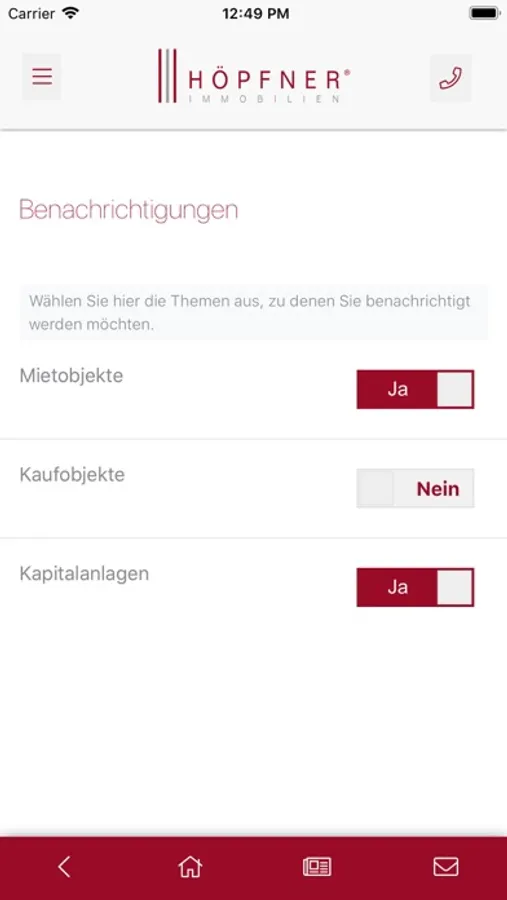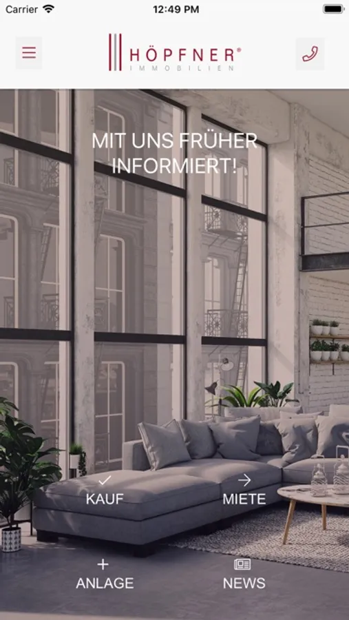 Außerdem: Sie finden einen Info-Bereich mit aktuellen Themen rund um die Immobilie inklusive einem Zinsbarometer für die Finanzierung. Nutzen Sie deshalb die HÖPFNER APP – Ihr neues Tool für Ihre erfolgreiche, schnelle und einfache Immobiliensuche ist kostenlos. Sie müssen sich nicht anmelden oder registrieren. Es sind keinerlei In-App-Käufe erforderlich.
