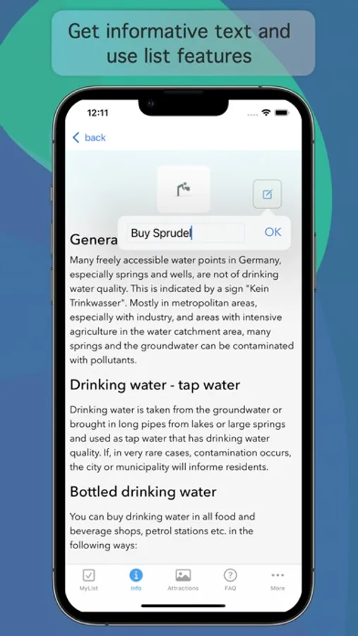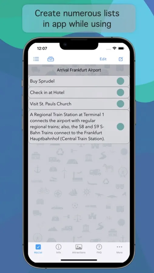 1) A to do list in which you can make entries in the entire app to note things down, e.g. excursion destinations