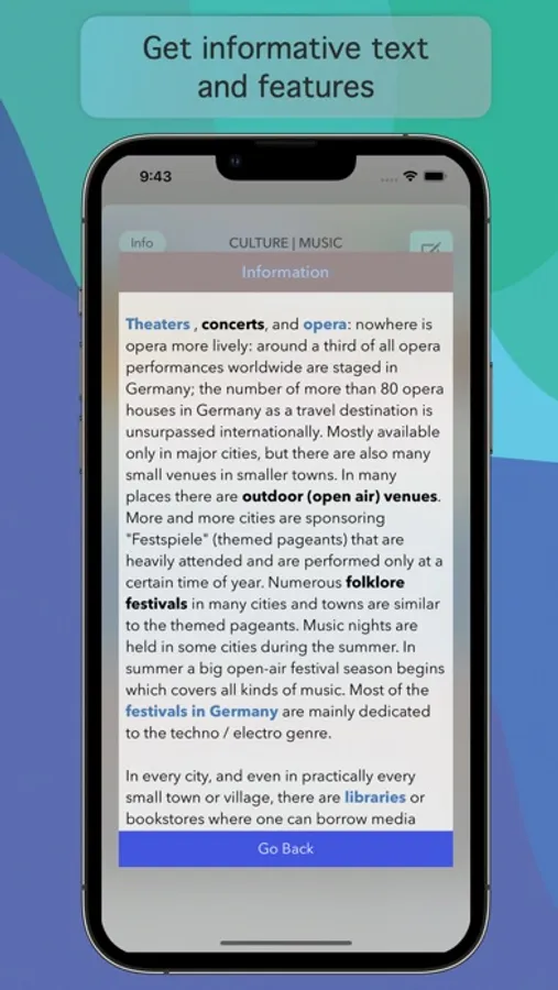 Get to know the beautiful places in Germany and understand the Germans because of the historical and geographical overview in this app.