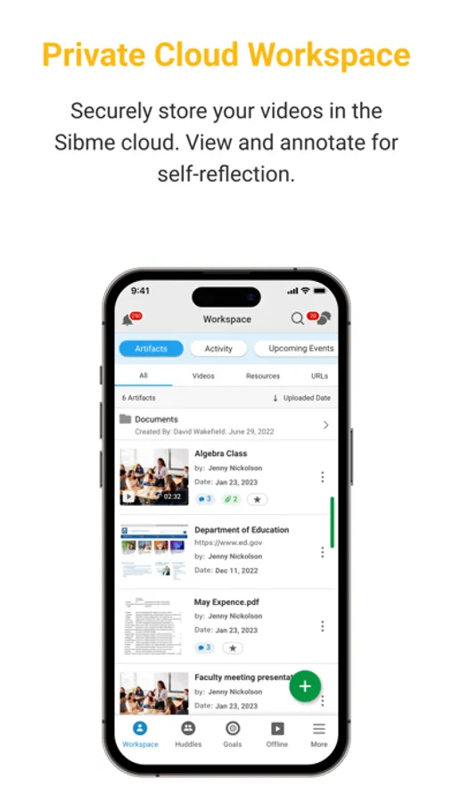 *Upload, view, and share resources and time-stamp attachments from your HMH Coaching Studio cloud Workspace and Huddles you are participating in with others in the account.