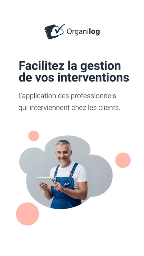 Organilog est une application à destinations des professionnels qui interviennent chez les clients. Objectif : gérer facilement les rapports d'intervention et les envoyer en cours de journée.