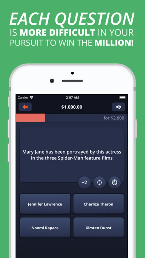 If you answer all 15 trivia questions correctly you get the virtual million dollars. Earn yourself a name as the undisputed quiz champion of the world by claiming a spot on the leaderboards. Unlock achievements while you progress.
