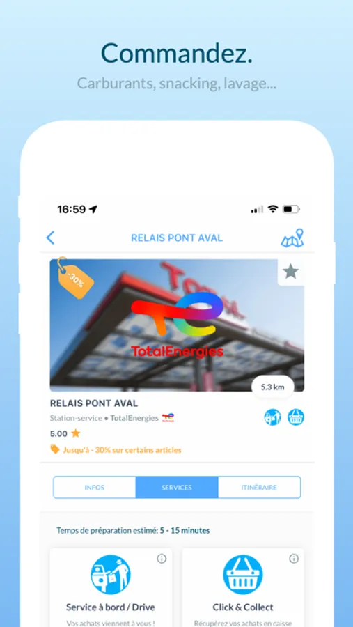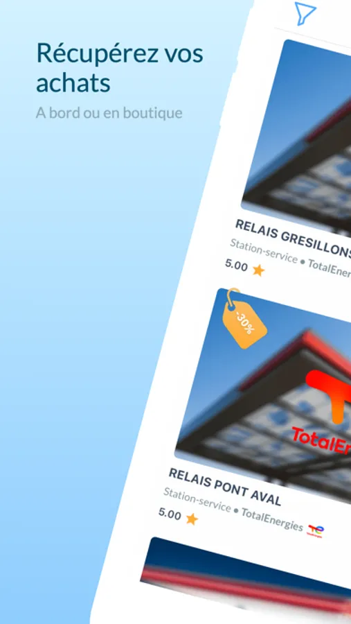 Alertez votre commerçant de votre arrivée et faites-vous servir à bord de votre véhicule : plein de carburant, livraison des produits de la boutique ou des services annexes (pression des pneus, lavage pare-brise…)