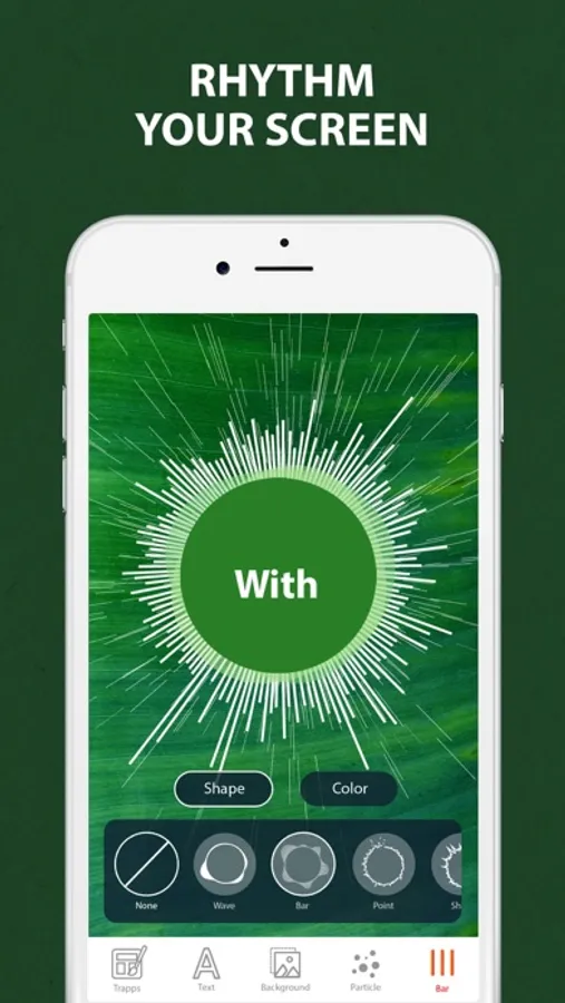 Trapp is a music visualization app. Simply pick the visualizer, customize and play with Spotify List or Music App on your device.