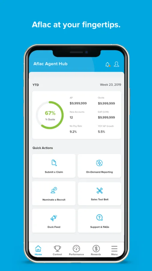Agent Hub is a selling, servicing and coaching tool created exclusively for Aflac agents, coordinators and market offices. From contest and performance tracking on easy-to-read dashboards to e-signature-enabled claims functionality, Agent Hub gives busy producers access to a host of tools to run their business on the go. Crafted with input from the Aflac field force, Agent Hub is a mobile one-stop-shop that is constantly adding new features to better serve the needs of Aflac producers and policyholders.