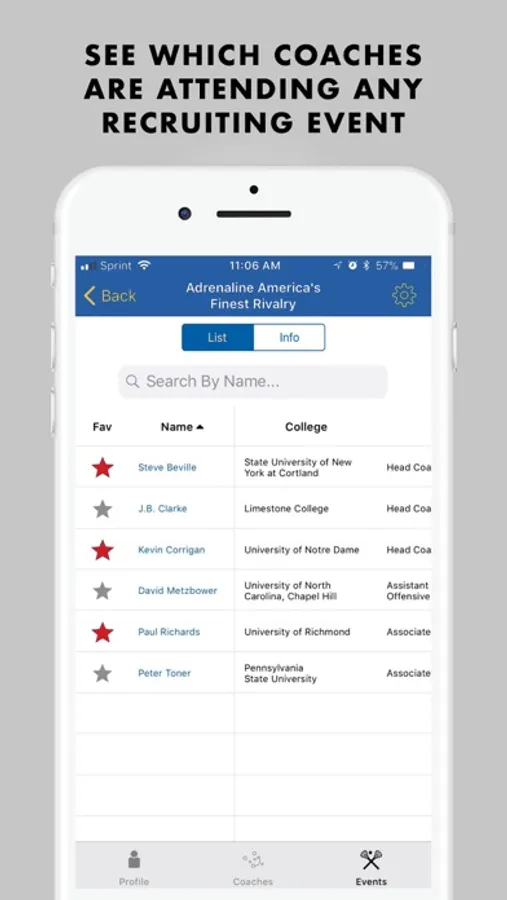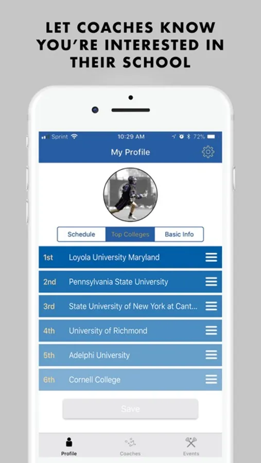 - Add up to 15 top colleges, coaches will see if you have selected their college.