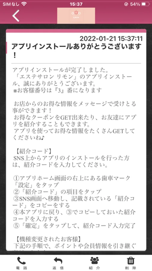 エステサロンリモンのアプリをSNSを通じてお友達に紹介する事ができます。