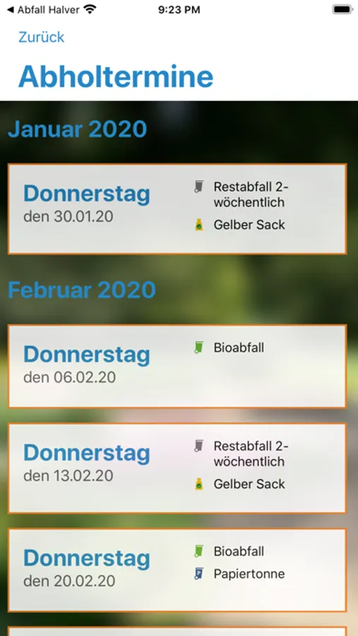 Welcher Wertstoff kann wann, wo und wie entsorgt werden? Der Tonnenticker Pro ermöglicht Ihnen den schnellen Zugriff auf die individuellen Abfuhrtermine. Alle Termine, auch für mehrere Standorte, können ebenfalls in Ihren Kalender geladen werden. Weitere Funktionen sind: