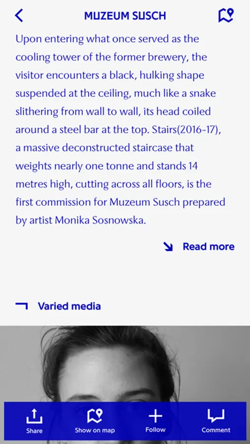 The Muzeum Susch App is a tool enriching the visitor experience by providing access to unique content related to the museum’s permanent and temporary exhibitions. Responding directly to your location, the app offers immediate yet in-depth information on the displayed artworks and exhibited artists. By providing access to archival drawings and images, multimedia from the installation process, as well as artist interviews, the app gives an insight into the creation process and history behind the works at the museum.