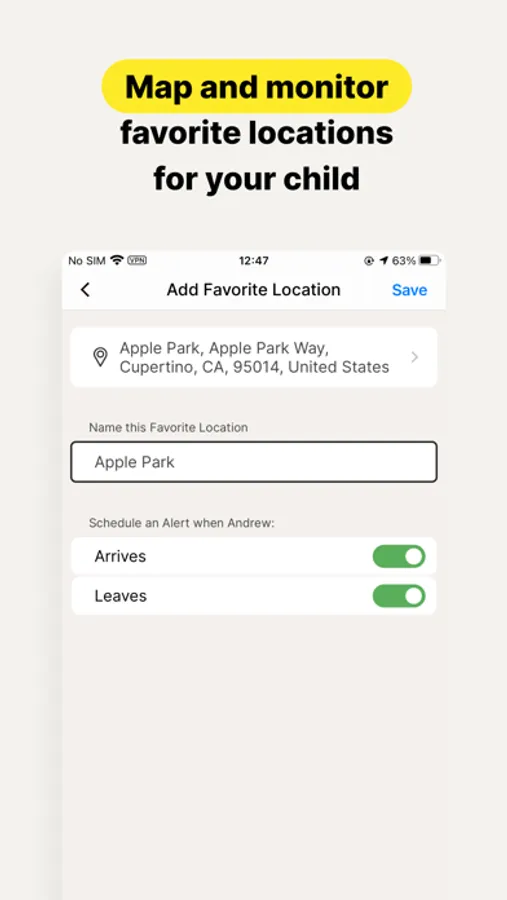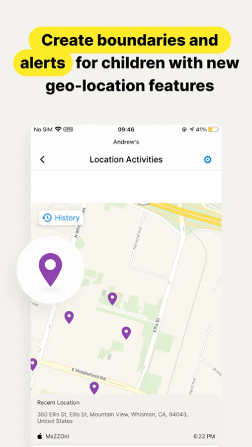 Use geo-location features in the app to track your child’s location (4). Plus, receive alerts if you’re your child arrives in or goes beyond areas of interest established by you, using geo-location tools.