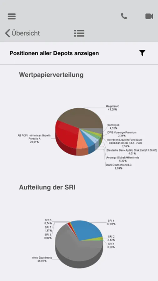- Konsolidierte Vermögensübersicht inkl. aller Fondsanteile, Versicherungen, Beteiligungen und Bankkonten