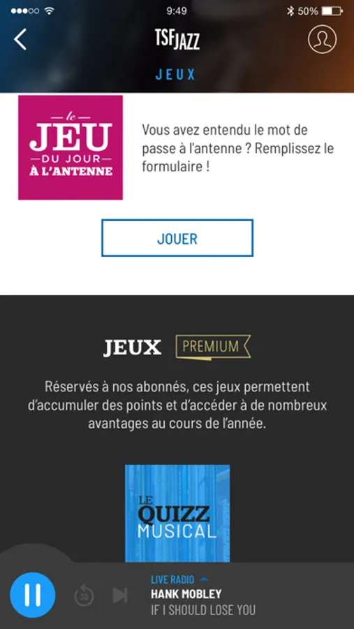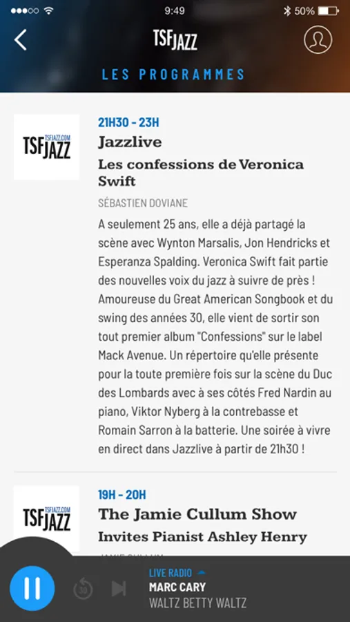 - Ecouter la radio de TSF Jazz en direct et sortir de l'application tout en continuant l'écoute en arrière plan, pour groover, swinger où vous voulez, quand vous voulez, avec qui vous voulez.