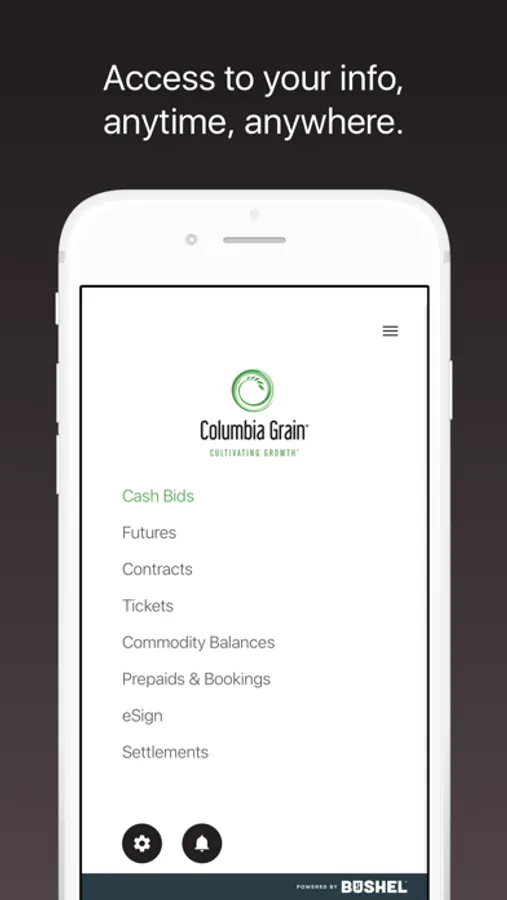 The Columbia Grain Intl app is free, secure, and developed by the industry-leading Bushel platform.