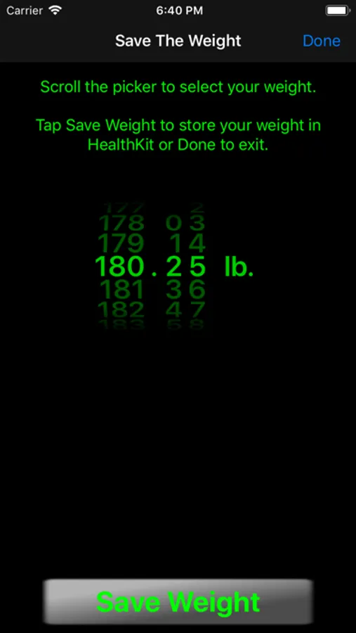 Record your daily body weight in HealthKit with Save The Weight an easy to use selector and one button save feature. Free trial access is available for 5 entries. Full access is available by In App Purchase.