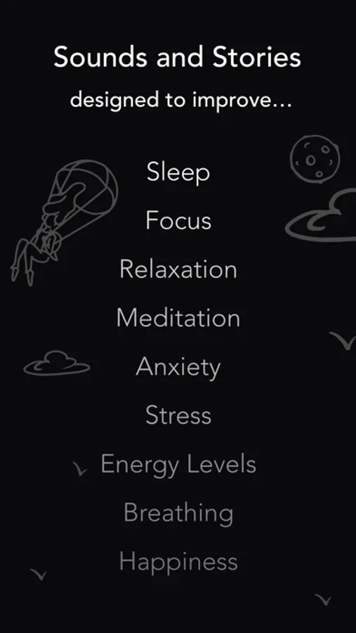 Sounds, music, stories and meditations designed to help you achieve better sleep, focus, relaxation, breathing, energy levels, and more.