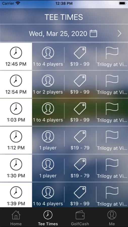 Booking a tee time is as easy as 3-taps and once you've setup your account the app will remember you so its always 3-taps. You can always look up your reservations and cancel reservations if you need to as well. Plus view and redeem your rewards or promotion codes anytime.