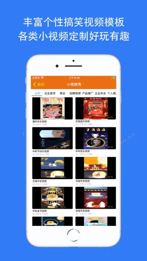 海量相册个性视频制作模板,让你轻松制作一个个性化的视频、相册视频或是广告视频,无基础也能一分钟制作一个视频许大片,小视频、短视频、微视频、朋友圈视频应用尽有,快来试试吧,从企业到个人你都可以做一个广告视频大片让你无片不在,更有中秋国庆圣诞新年春节元宵劳动节万圣节端午情人七夕重阳冬至除夕儿童等节假日广告宣传搞笑类视频制作,还有更多朋友圈广告宣传工具可以使用,在这里不做介绍,等你下载来做尝试,再通过社交传播软件应用如抖音、微信等平台助你营销宣传推广或是在朋友圈搞人气等。