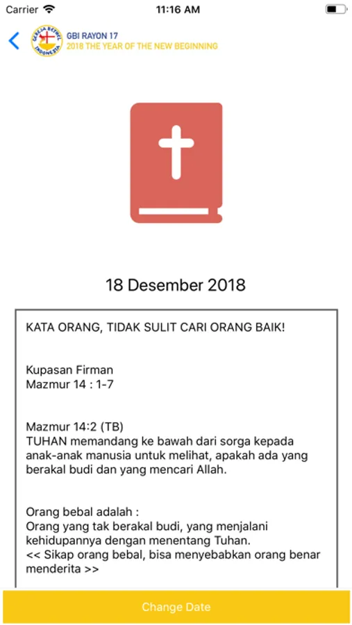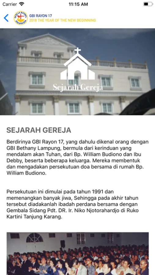 Shalom, Selamat datang di aplikasi GBI Rayon 17 Lampung. Aplikasi ini dibuat untuk memenuhi kebutuhan jemaat GBI Rayon 17 Lampung. Aplikasi ini menyediakan pengumuman tentang jadwal ibadah, informasi mengenai pelayanan dan kegiatan-kegiatan yang ada di gereja.