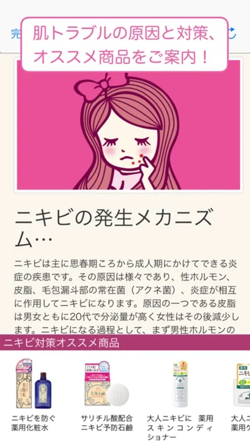 各肌トラブルに応じた原因と対策、おすすめ商品もご案内しています。気になる肌トラブルに合わせてチェックしてみてください。