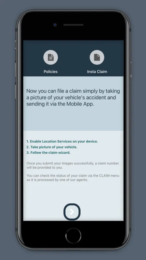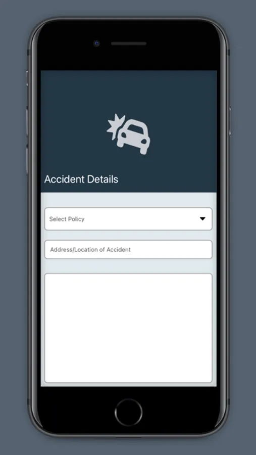 The mobile app also features the ability to start a claim process by submitting information of an accident.