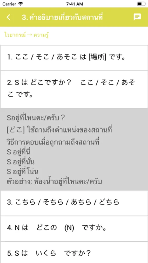 1. ความรู้พื้นฐานของคำศัพท์ - ประโยค - ไวยากรณ์: ในแต่ละหน่วยงานผู้ใช้สามารถตรวจสอบคำพูด - ความหมายของคำศัพท์ 60 คำและ 60 ประโยคตัวอย่าง นอกจากนี้ยังมีคำอธิบายไวยากรณ์สำหรับประโยคที่เรียนรู้ในแต่ละหน่วย