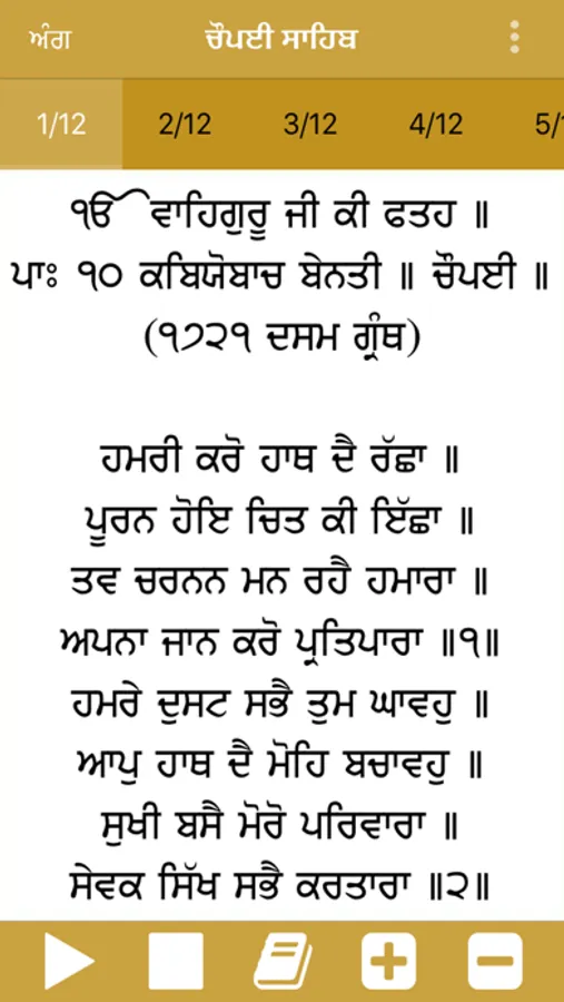 Arril and Chaupai (which follows Benti Chaupai as written in the Sri Dasam Granth. These short stanzas act as a conclusion to this Bani before the Zafarnama)