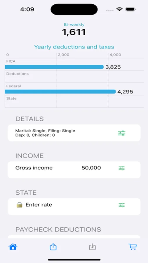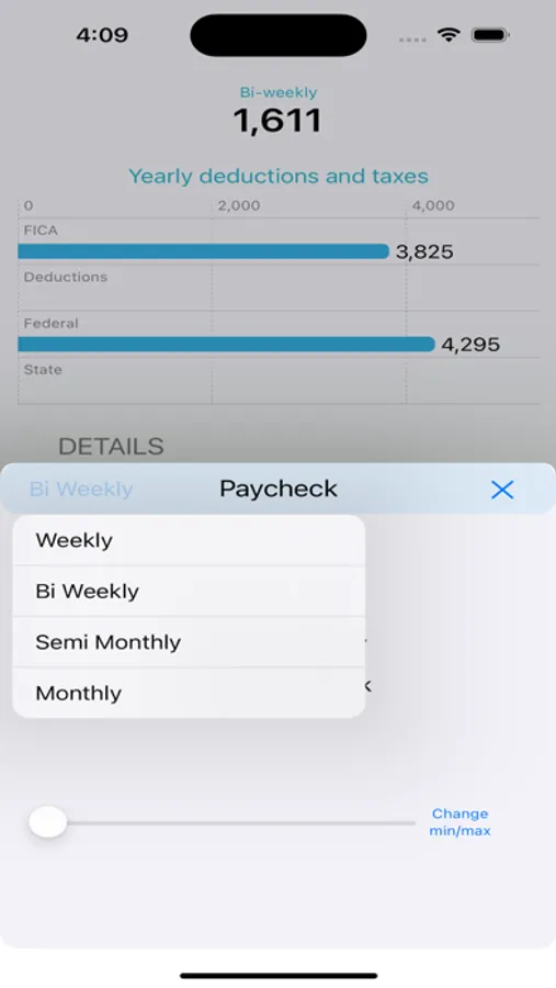 It can be complicated and exhausting to make changes to multiple inputs (marital status, state, deductions, mortgage amount, interest, charity, 401K, health savings account, etc.), and calculate their impact on taxes and paycheck amount, retirement, and savings. The app makes it easy to see the numbers dynamically as and when you make changes. To provide an instant answer to your changes, the data input is managed through a slider and in multiples of 5, 10, 25, 100, or 1000 increments. We sacrificed a bit in accuracy over speed. However, the number of changes you can make in an instance would be unfathomable in apps requiring entries.