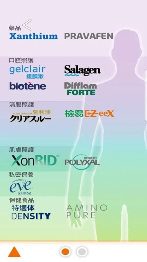 用藥提醒 、 衛教資訊、商品介紹、專科講座、我的故事、 學術資訊 、產品FABE