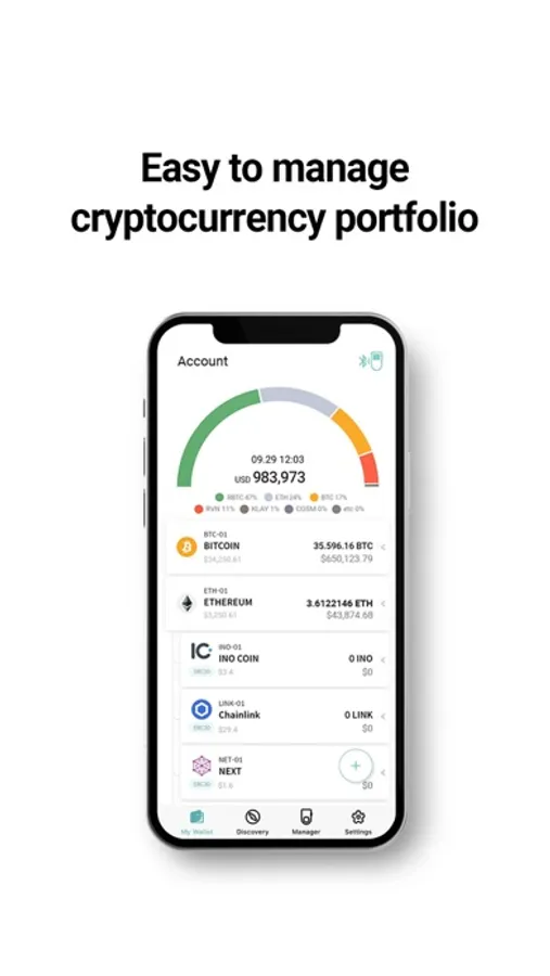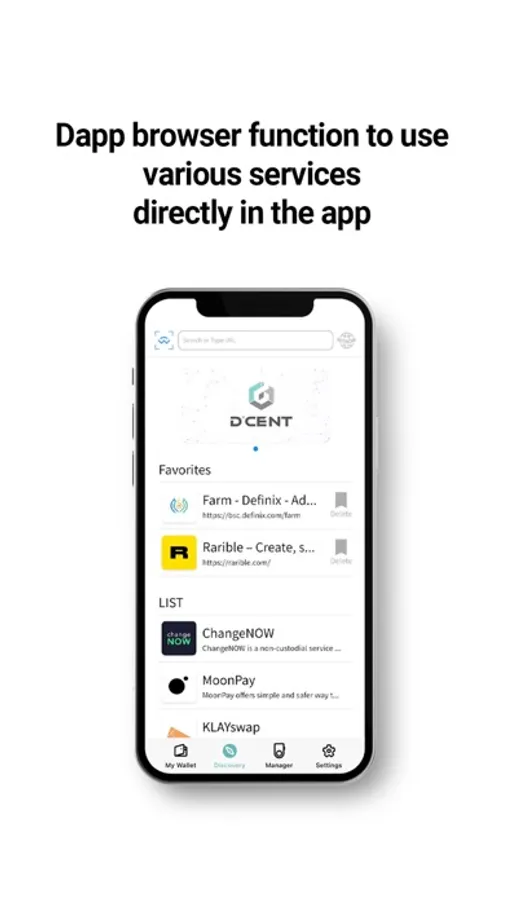D’CENT Wallet allows you to safely store your cryptocurrencies and conveniently access blockchain-based services such as DeFi and Staking. With a single D’CENT Mobile App, you can link with a hardware wallet or use it as a software wallet without hardware.