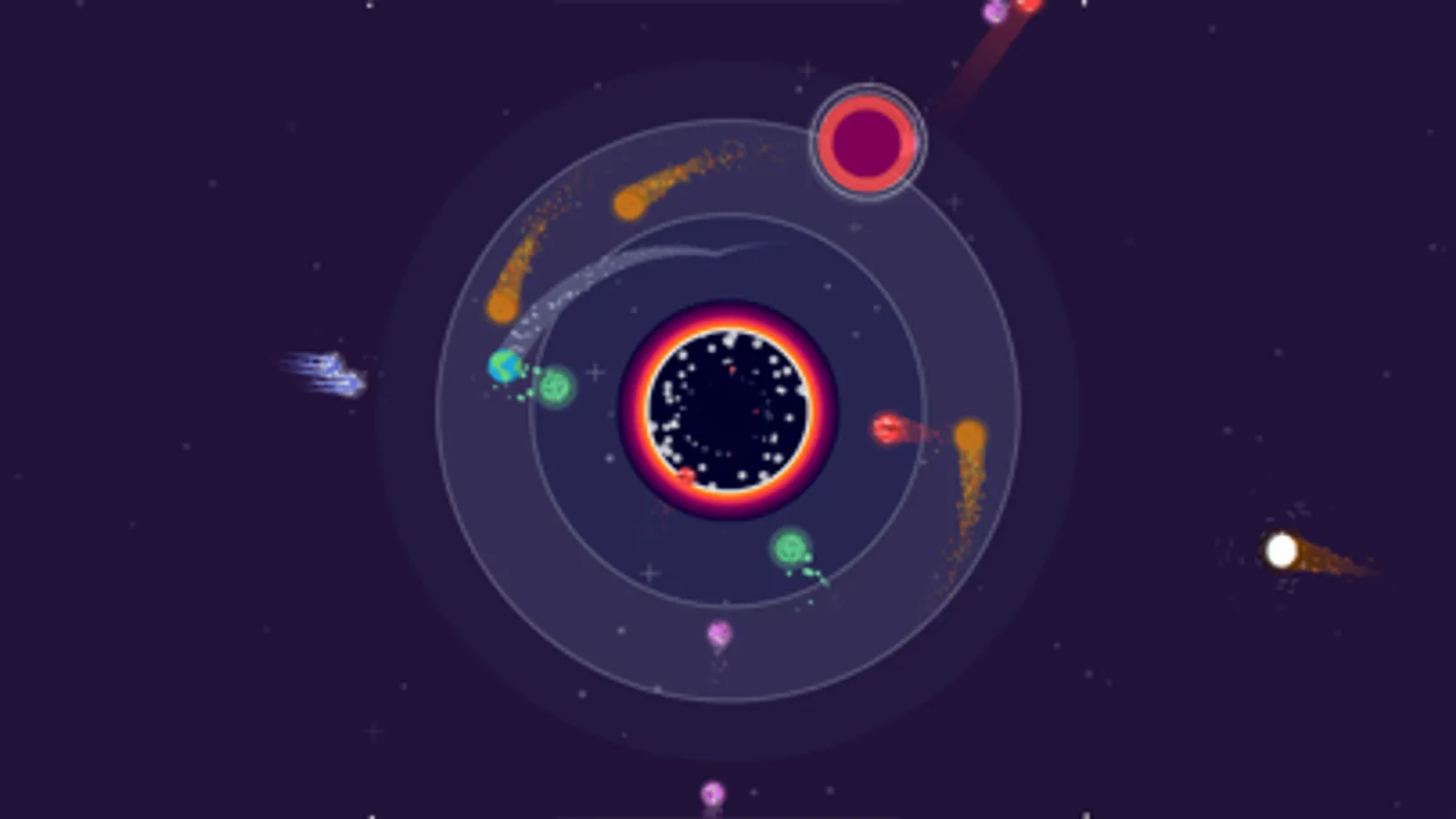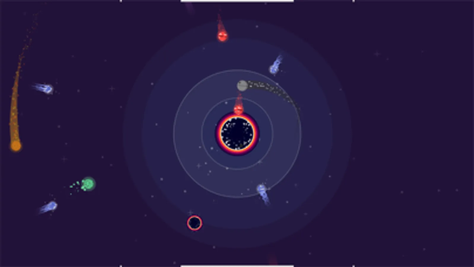 Stay in orbit while avoiding obstacles or being sucked into a black hole. Survive as long as you can while dodging and weaving between the various obstacles, the closer you orbit to the center; the faster you achieve points. The longer you last, the harder it gets. Good Luck and have fun playing with gravity!
