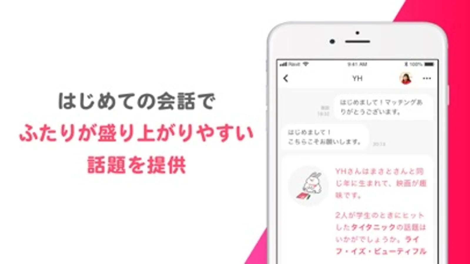 ラビットはマッチング後、お互いのプロフィール情報から、ふたりが盛り上がりやすい話題を提供します。