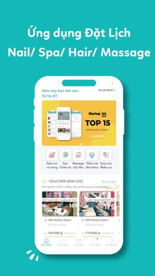 Địa điểm phong phú đa dạng với các ngành Chăm sóc da/Massage, Làm tóc làm móng, Thẩm mỹ viện, Phòng khám, Thể dục thể thao, và Xăm hình,...