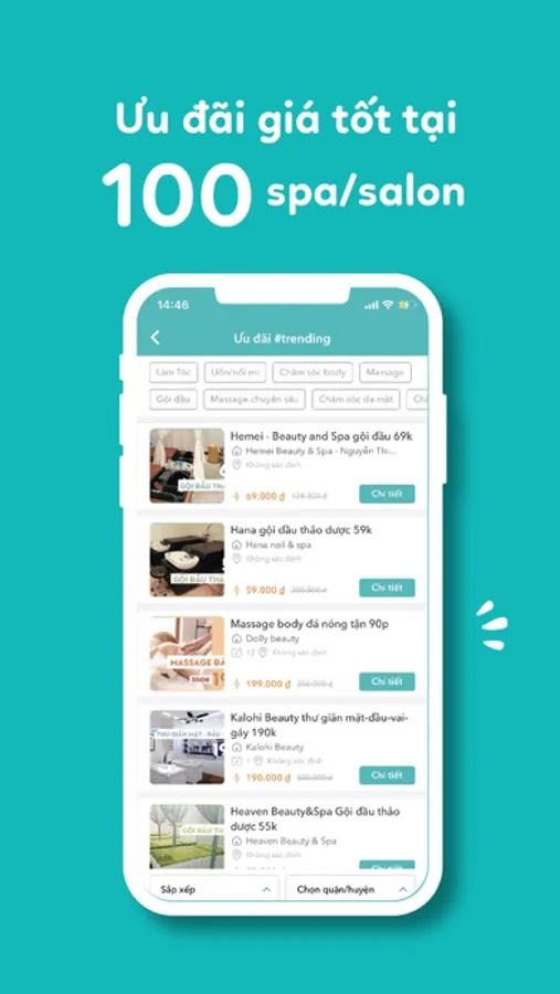 Bạn có thể dễ dàng tìm kiếm spa hoặc salon theo địa điểm gần bạn, theo ngành hoặc quận huyện, đang có ưu đãi,...