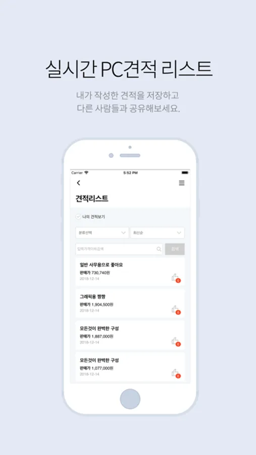 - 견적 공유하기 및 좋아요